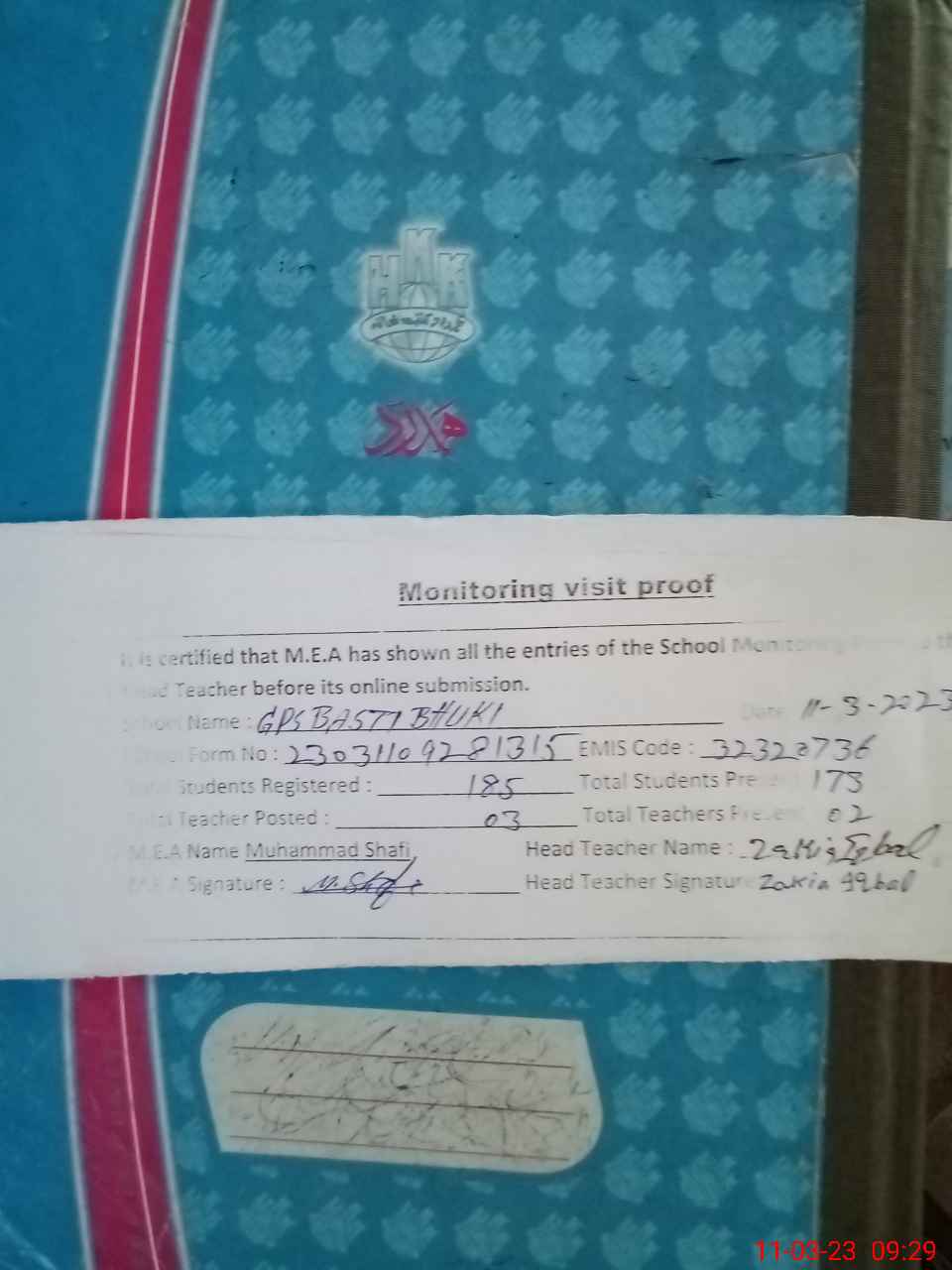 | EMIS Code: 32320736 | Name of School: GPS BASTI BUKHI | |||