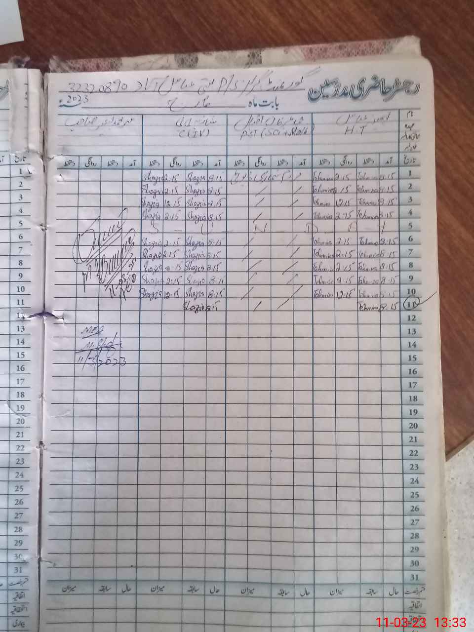 | CNIC | Full Name | Designation | R/C | Absence During Last Calender Month |