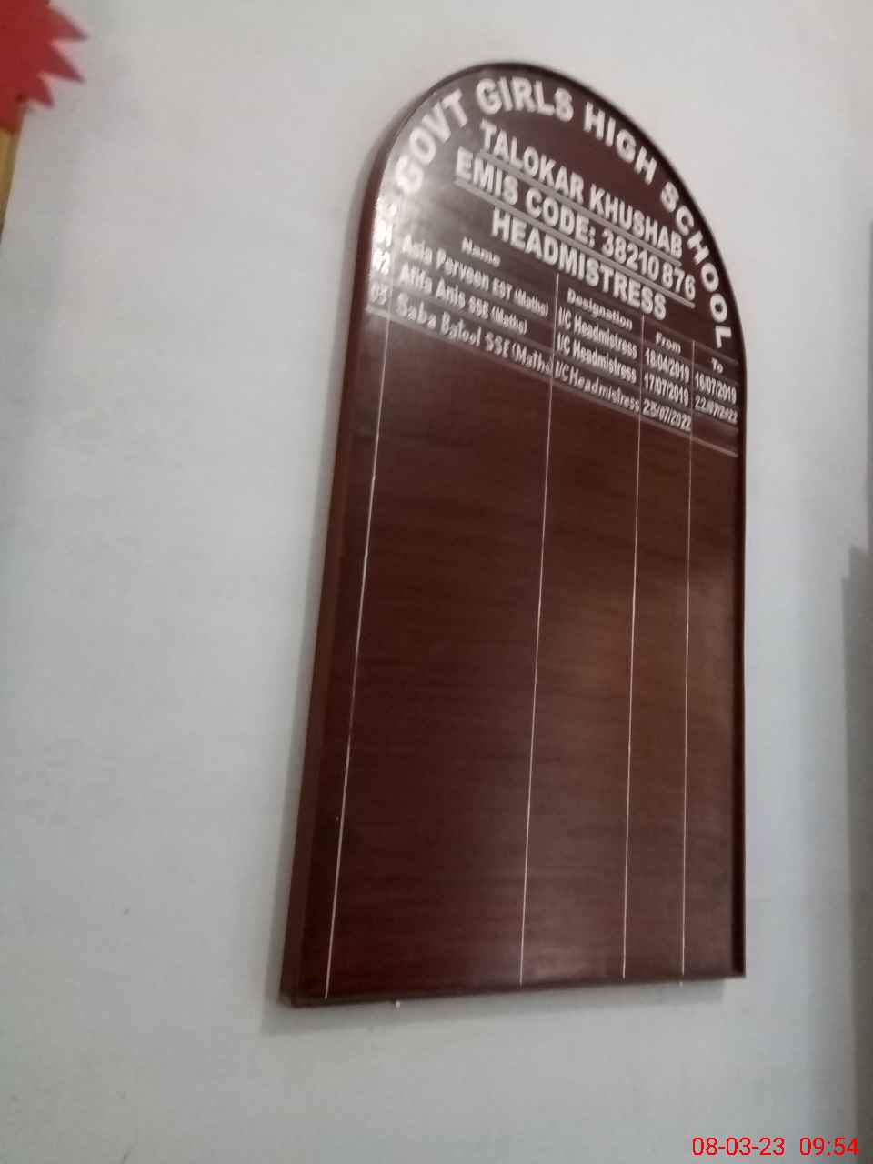 | District: KHUSHAB | Tehsil: KHUSHAB | Markaz: TALOKER (FEMALE) | Level: High | |