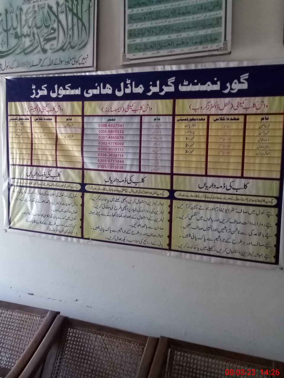 | EMIS Code: 38210716 | Name of School: GGCMHS KURAR | |||