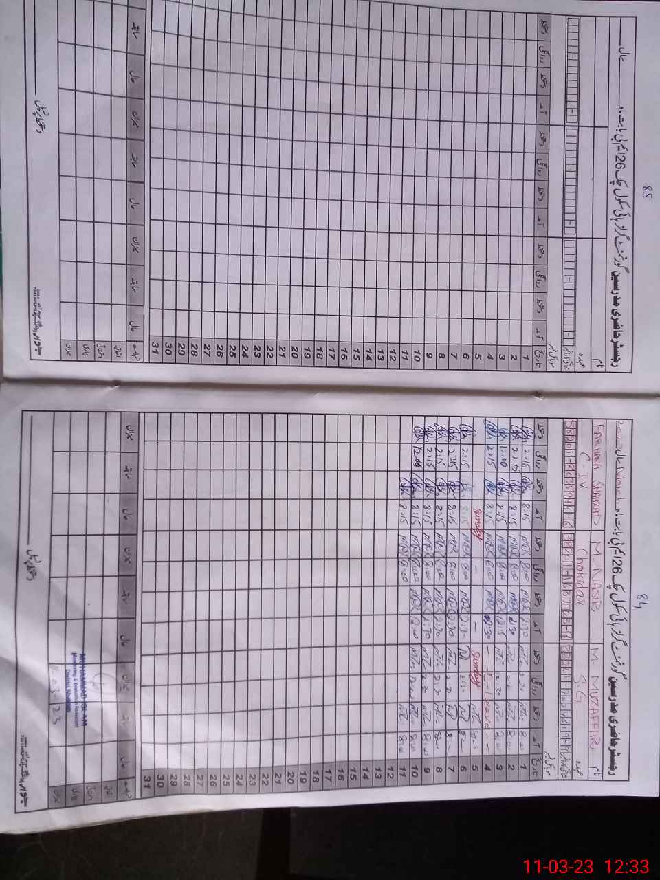 | CNIC | Full Name | Designation | R/C | Absence During Last Calender Month |