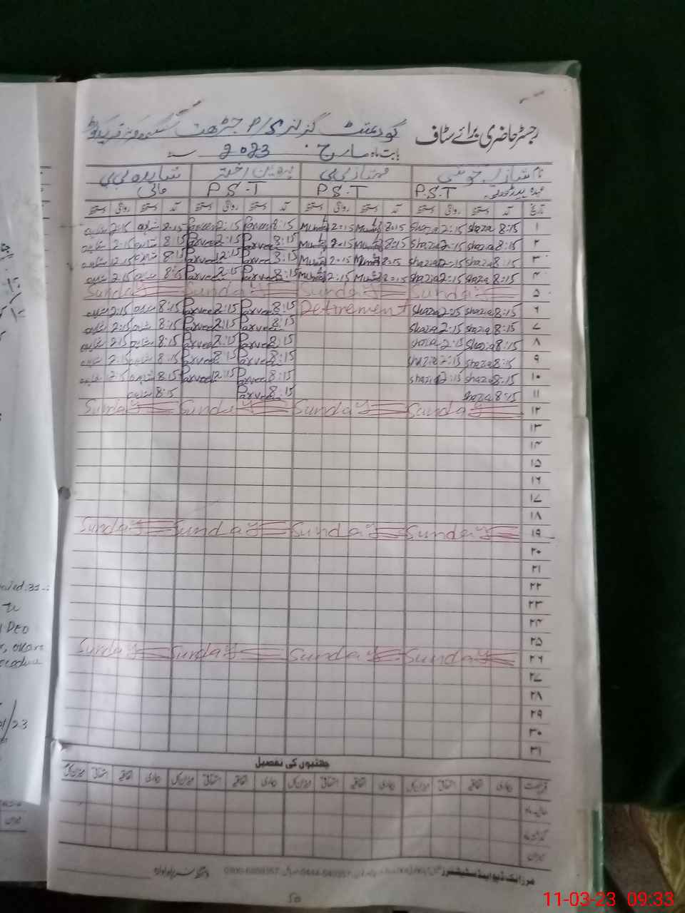 | Name: SH**** KH**** Designation: (School Headmaster's/Headmistress's) PST Phone/Cell Number: 03**** |