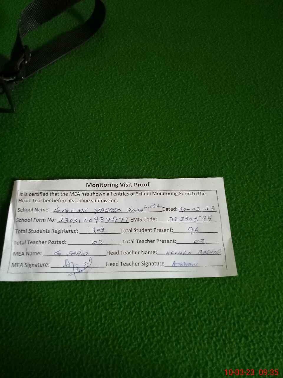 | EMIS Code: 32330599 | Name of School: GGCMS YASEEN KHAN WALA | |||