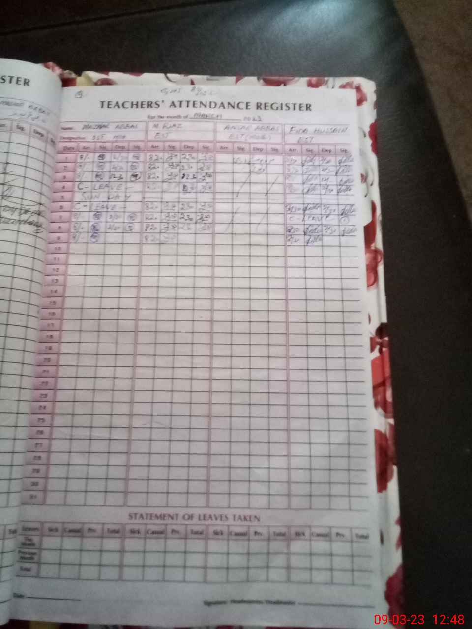 | Leave | Duty | Absent | Maternity | Medical | Ex- Pak |