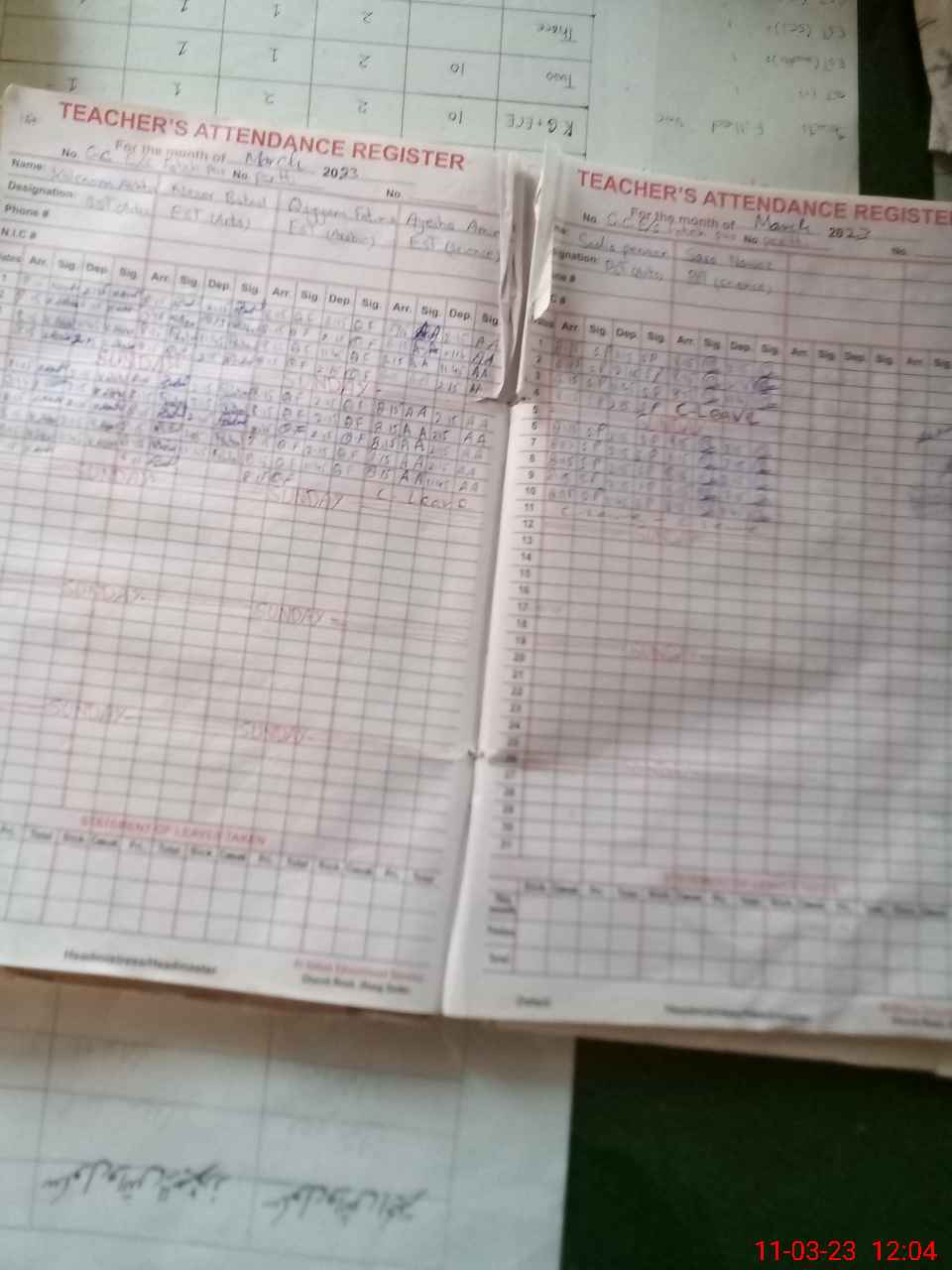 | CNIC | Full Name | Designation | R/C | Absence During Last Calender Month |