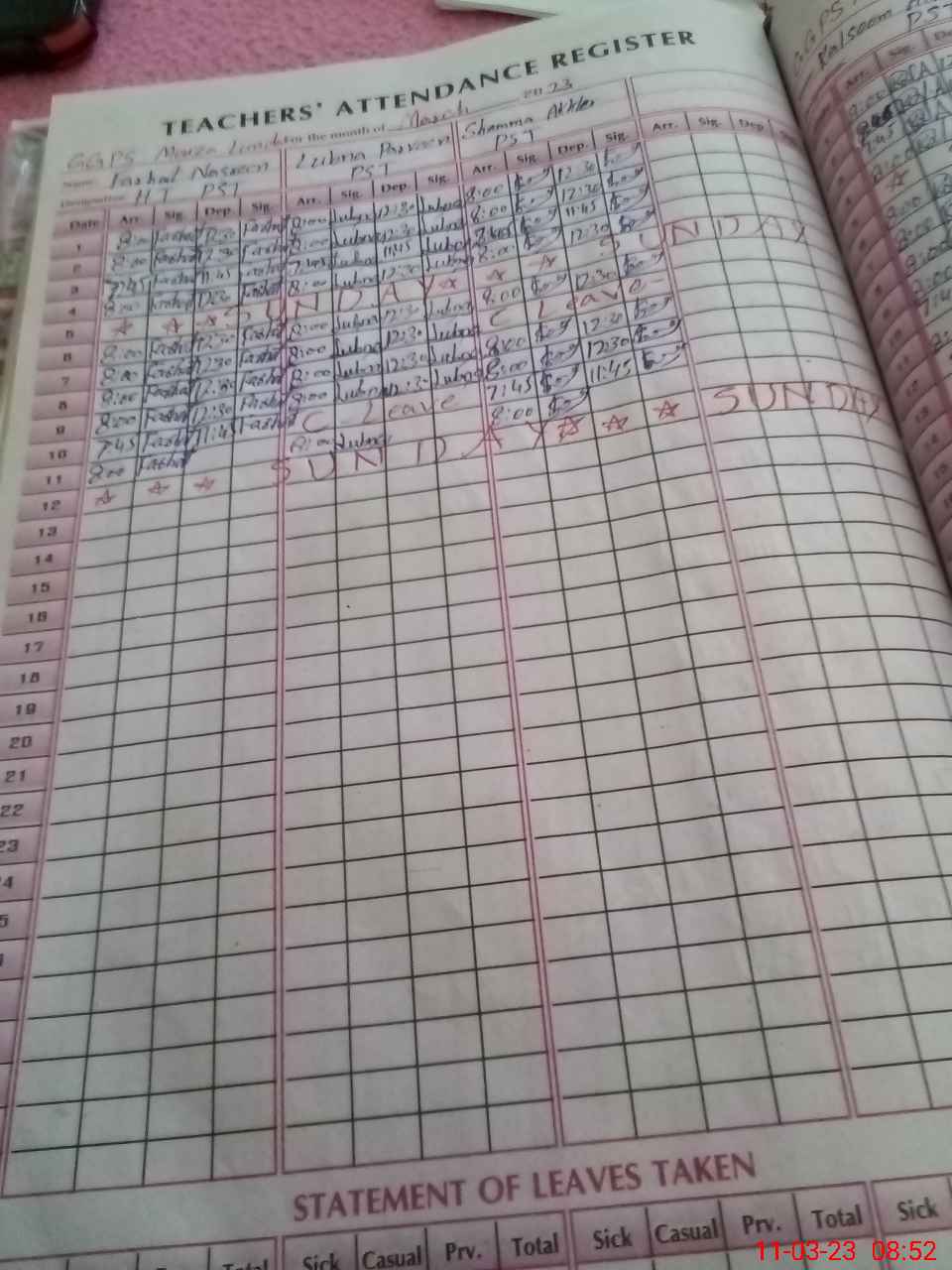 | Leave | Duty | Absent | Maternity | Medical | Ex- Pak |