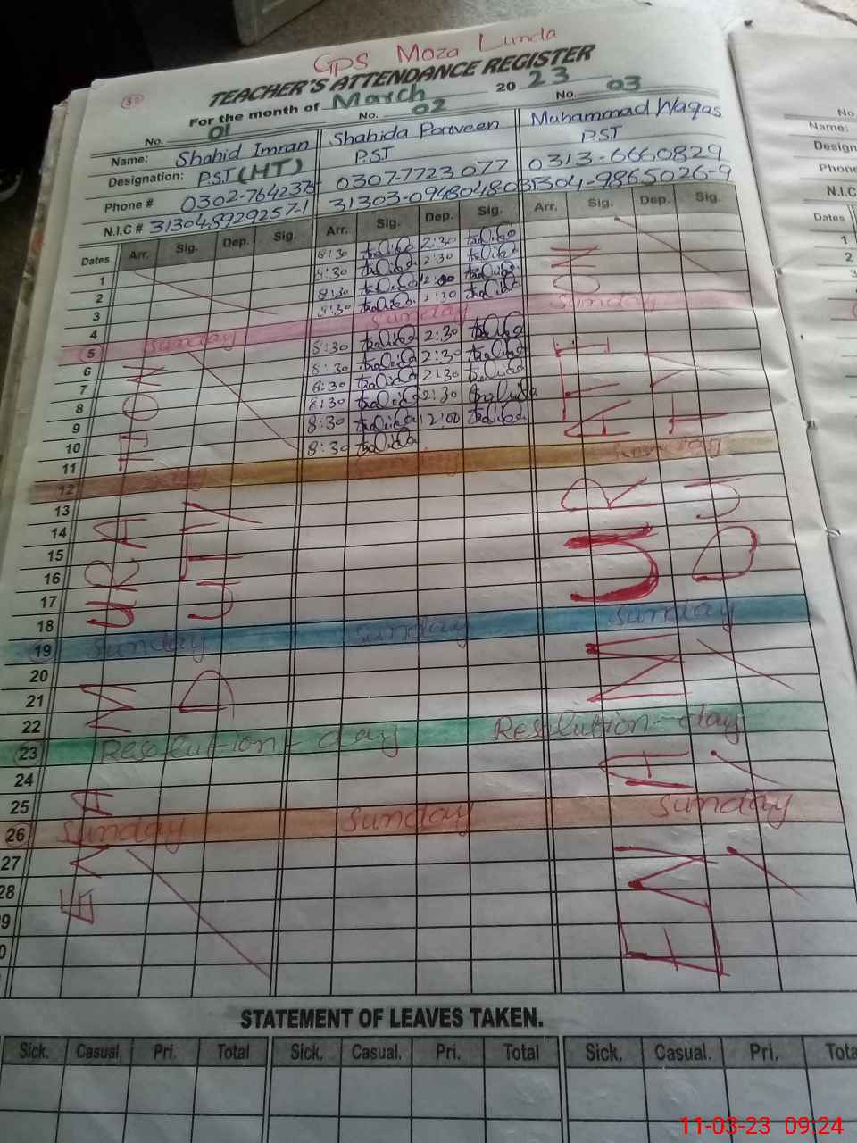 | Name: Sh**** Im**** Designation: (School Headmaster's/Headmistress's) PST Phone/Cell Number: 03**** |