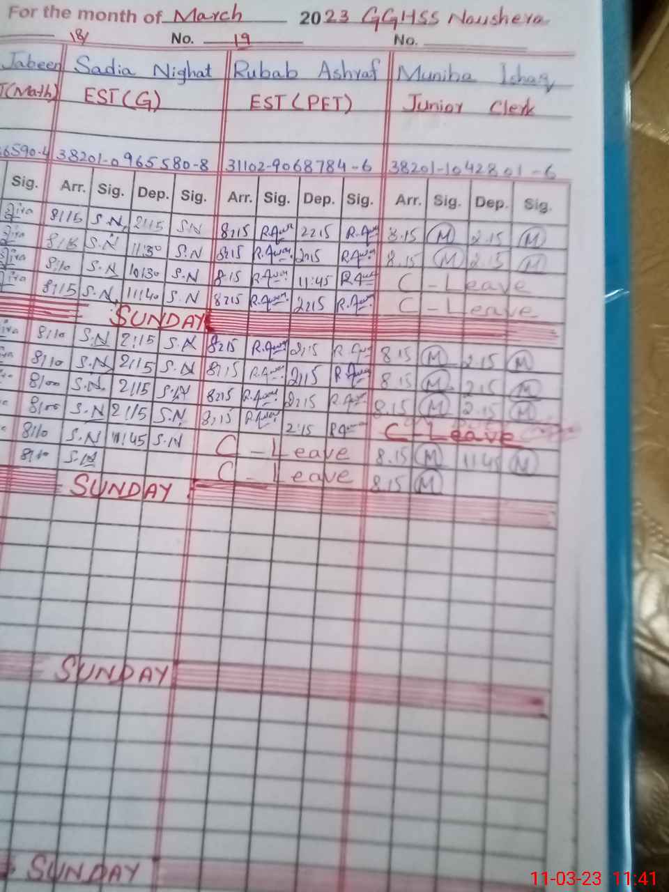 | CNIC | Full Name | Designation | R/C | Absence During Last Calender Month |