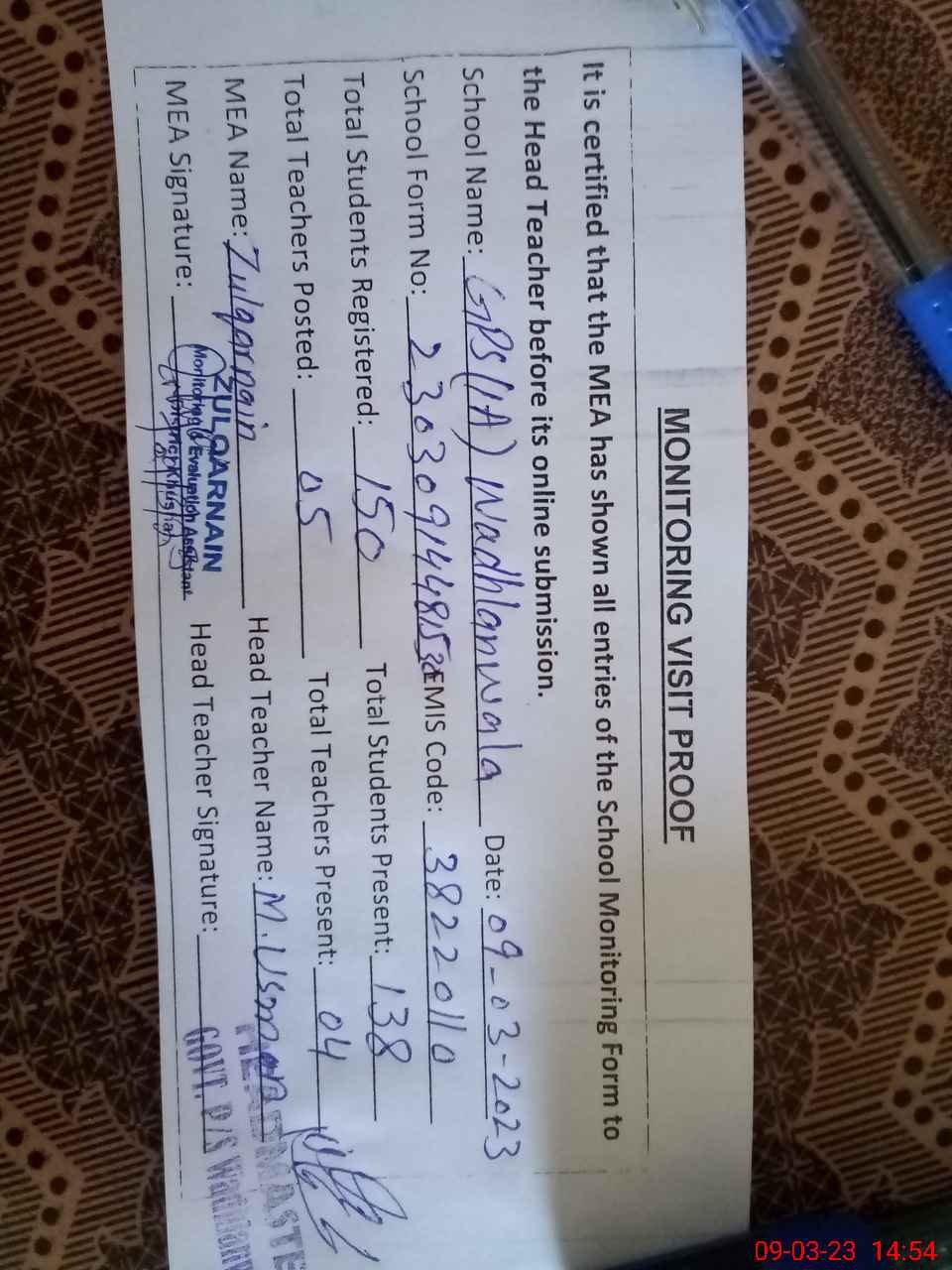 | EMIS Code: 38220110 | Name of School: GPS WADHLAN WALA | |||