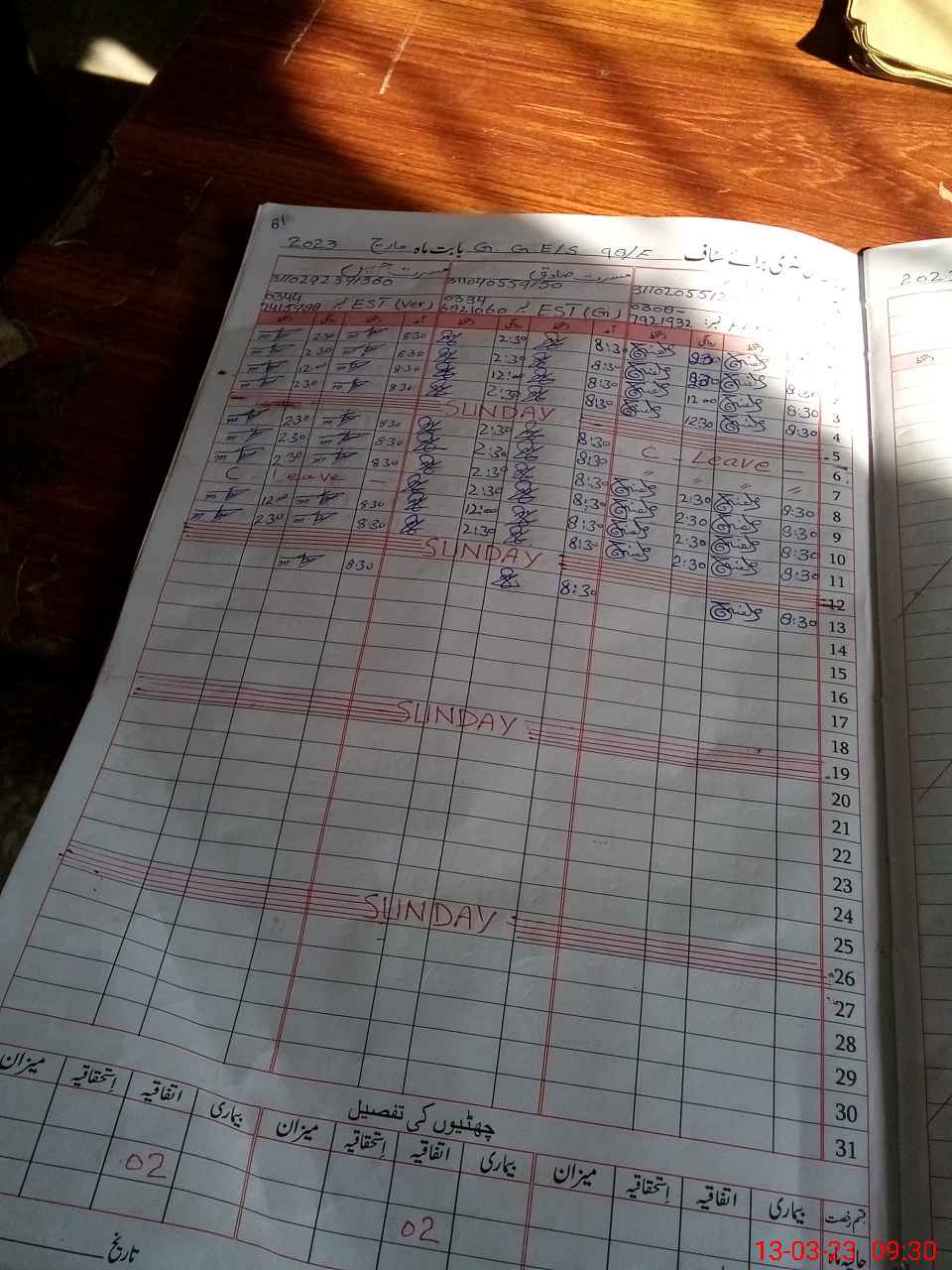 | CNIC | Full Name | Designation | R/C | Absence During Last Calender Month |