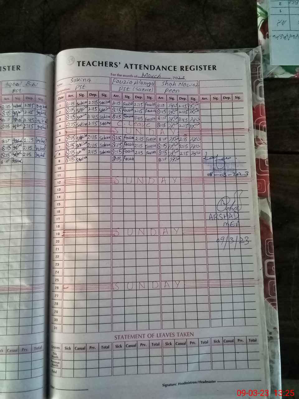 | Name: FA**** BI**** Designation: (School Headmaster's/Headmistress's) PST Phone/Cell Number: 03**** |
