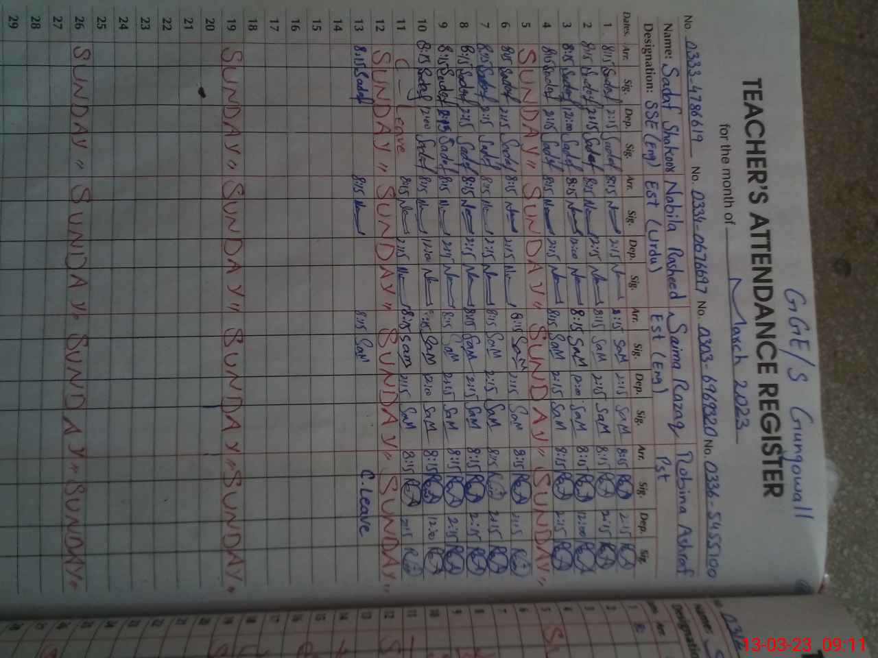 | Name: NA**** RA**** Designation: (School Headmaster's/Headmistress's) EST Phone/Cell Number: 03**** |