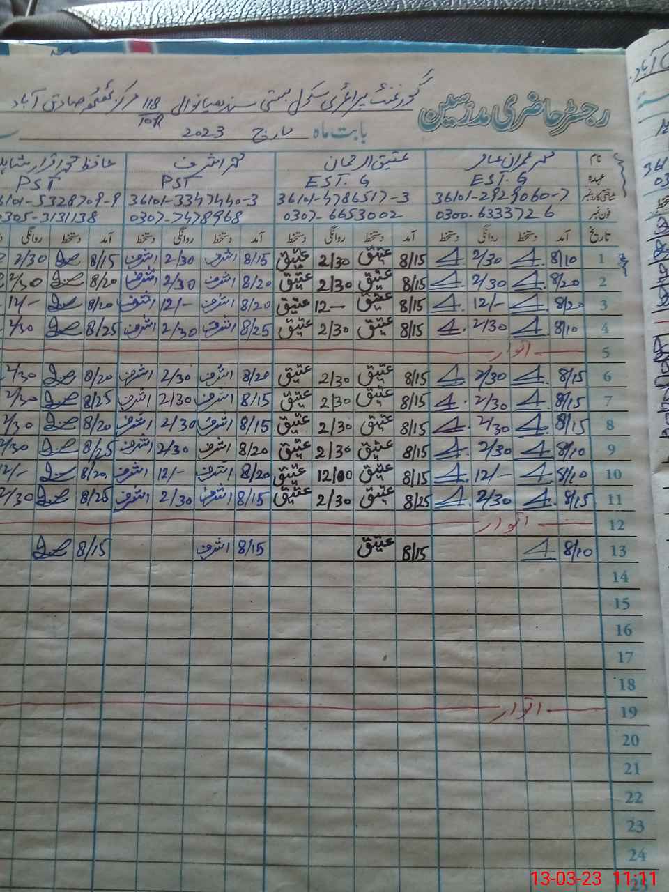 | Name: Ha**** Mu**** Iq**** Sh**** Designation: (School Headmaster's/Headmistress's) PST Phone/Cell Number: 03**** |