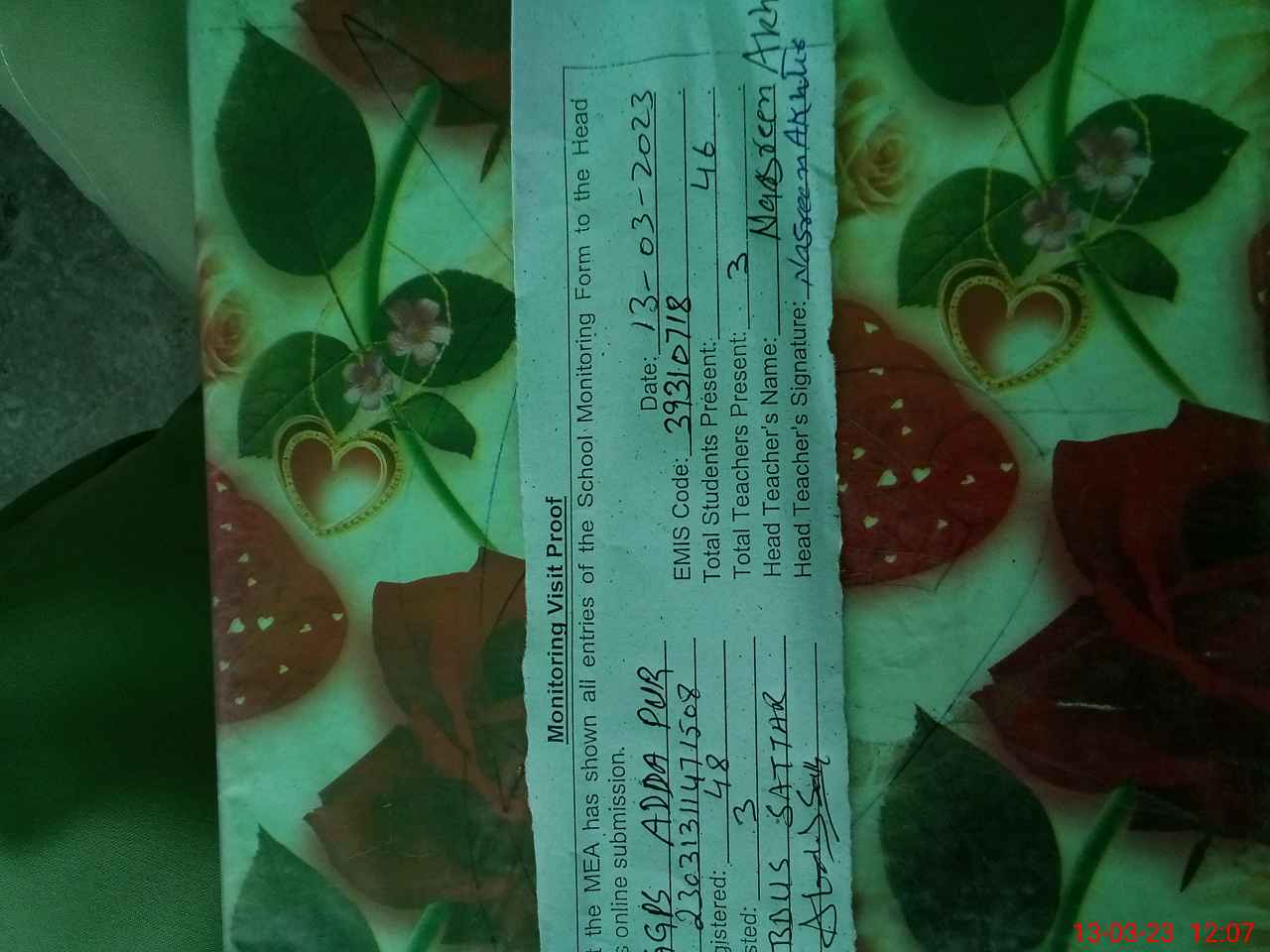 | EMIS Code: 39310718 | Name of School: GGPS ADDA PUR | |||
