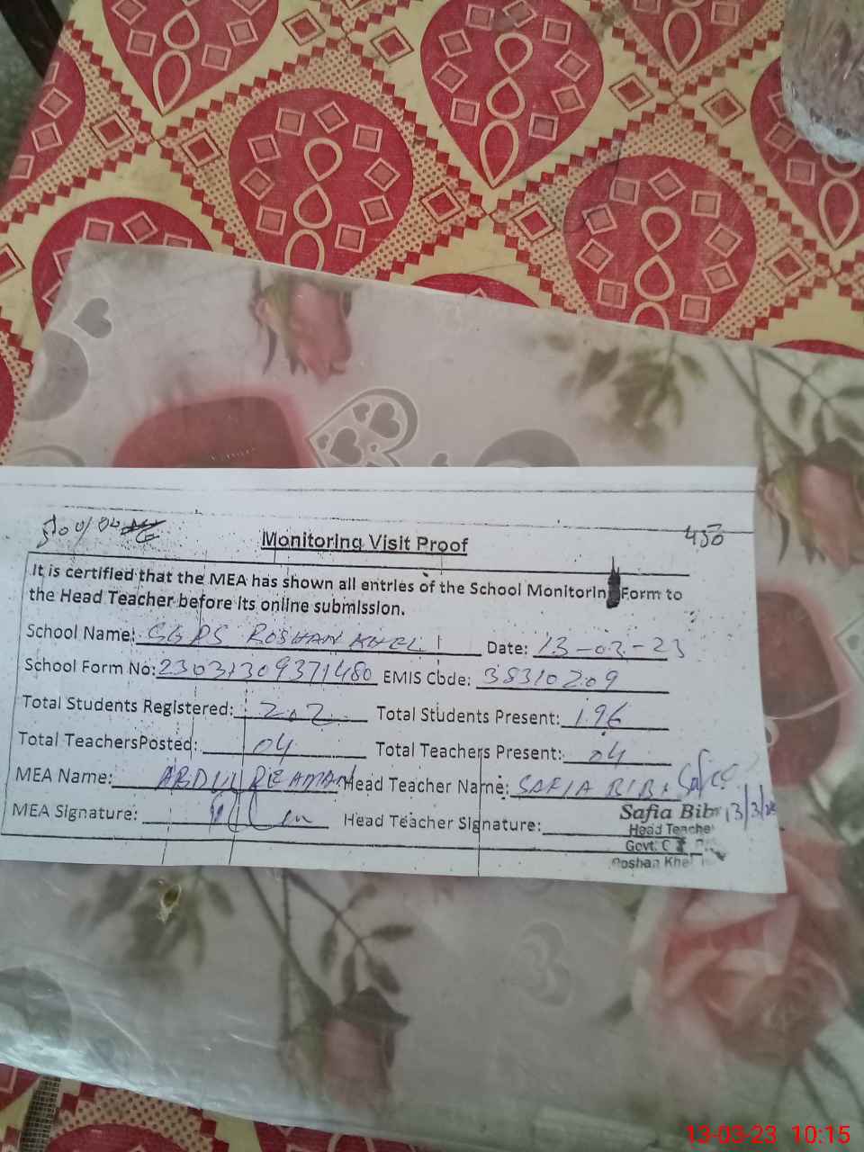 | EMIS Code: 38310209 | Name of School: GGPS ROSHAN KHEL | |||