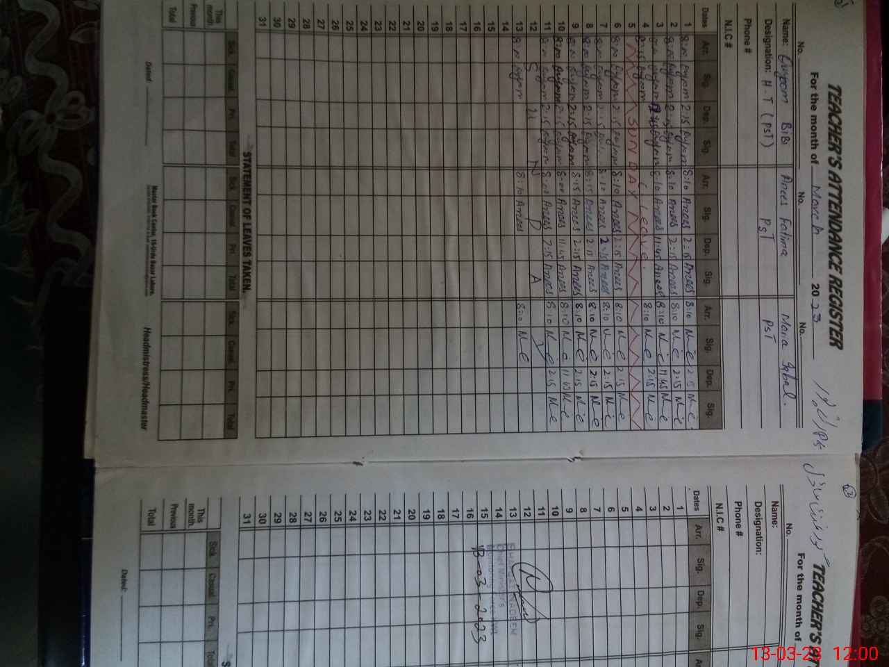 | Name: QA**** BI**** Designation: (School Headmaster's/Headmistress's) PST Phone/Cell Number: 03**** |