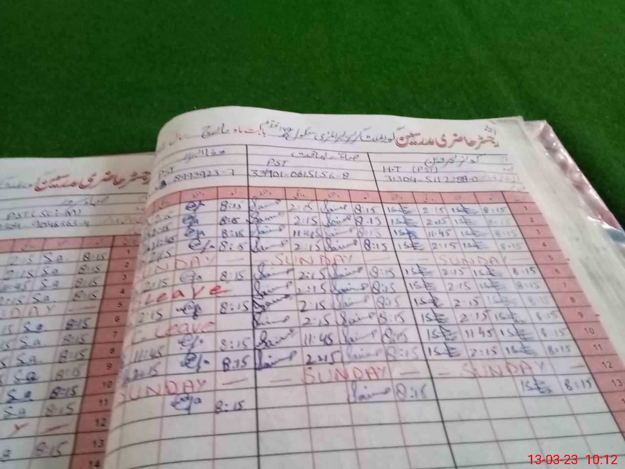 | CNIC | Full Name | Designation | R/C | Absence During Last Calender Month |