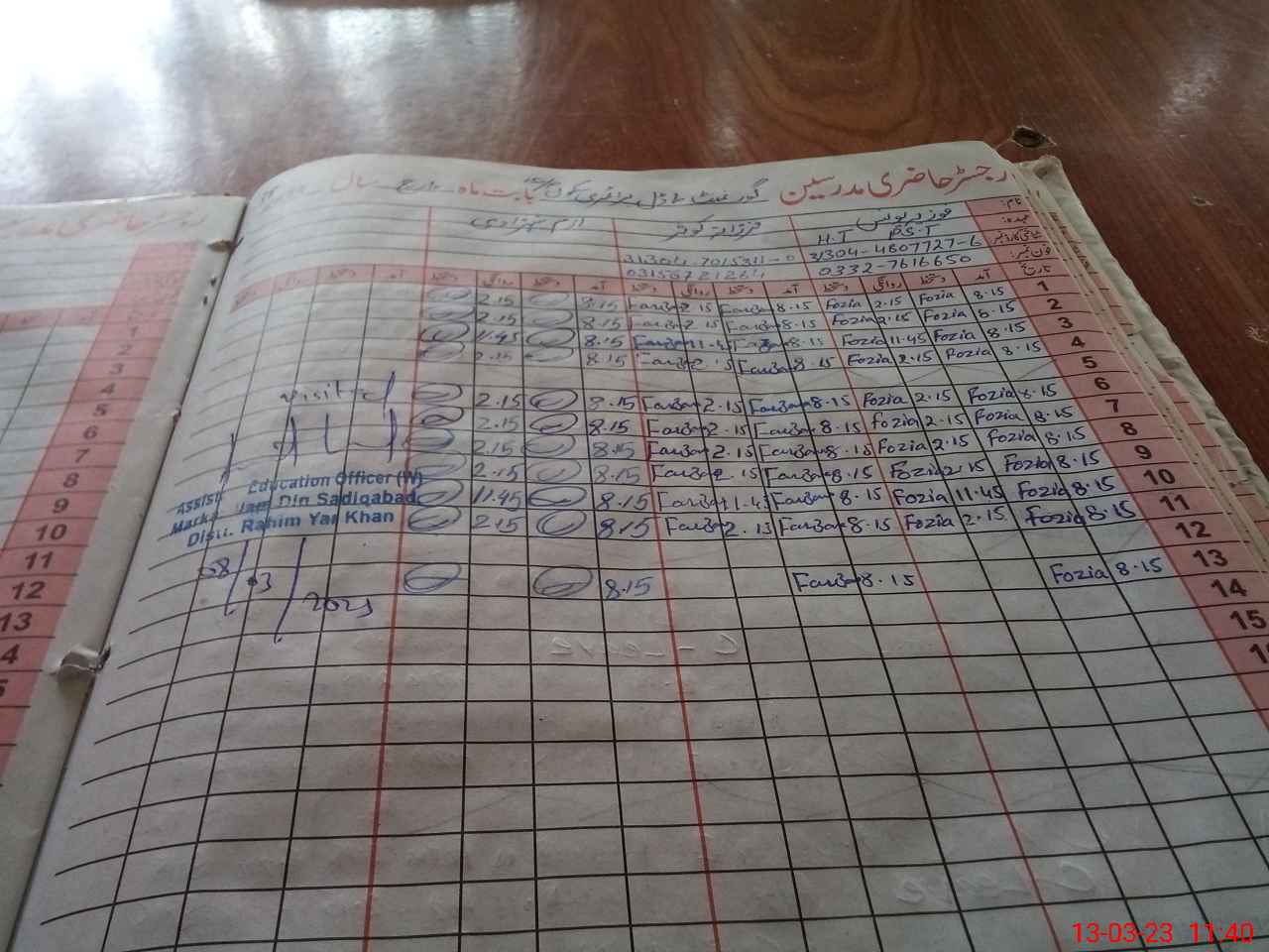 | District: RAHIMYAR KHAN | Tehsil: SADIQABAD | Markaz: ILLAM DIN -FEMALE | Level: Primary | |
