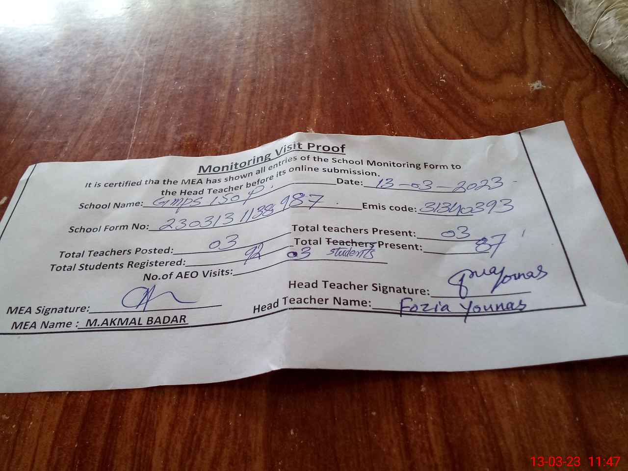 | Certified that this School was Inspected by the Undersigned MEA/DMO Today and the Information Stated Above is as Per Record. | |||||