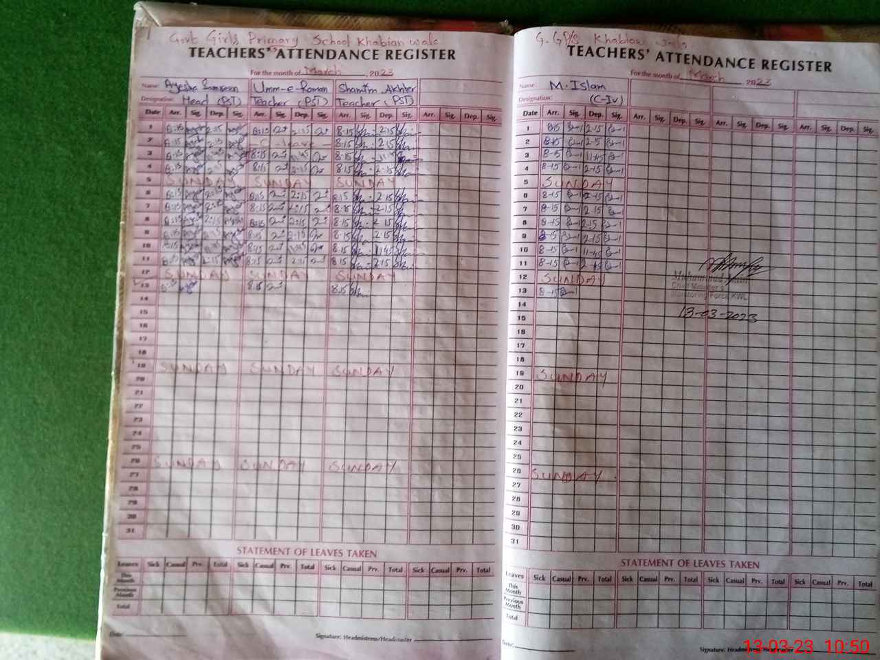 | Name: Ay**** Sa**** Designation: (School Headmaster's/Headmistress's) PST/PTC/JV Phone/Cell Number: 03**** |