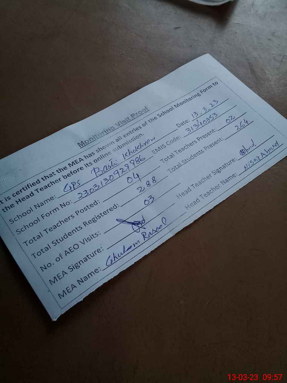 | EMIS Code: 31340353 | Name of School: GPS BASTI KHOKHRAN | |||