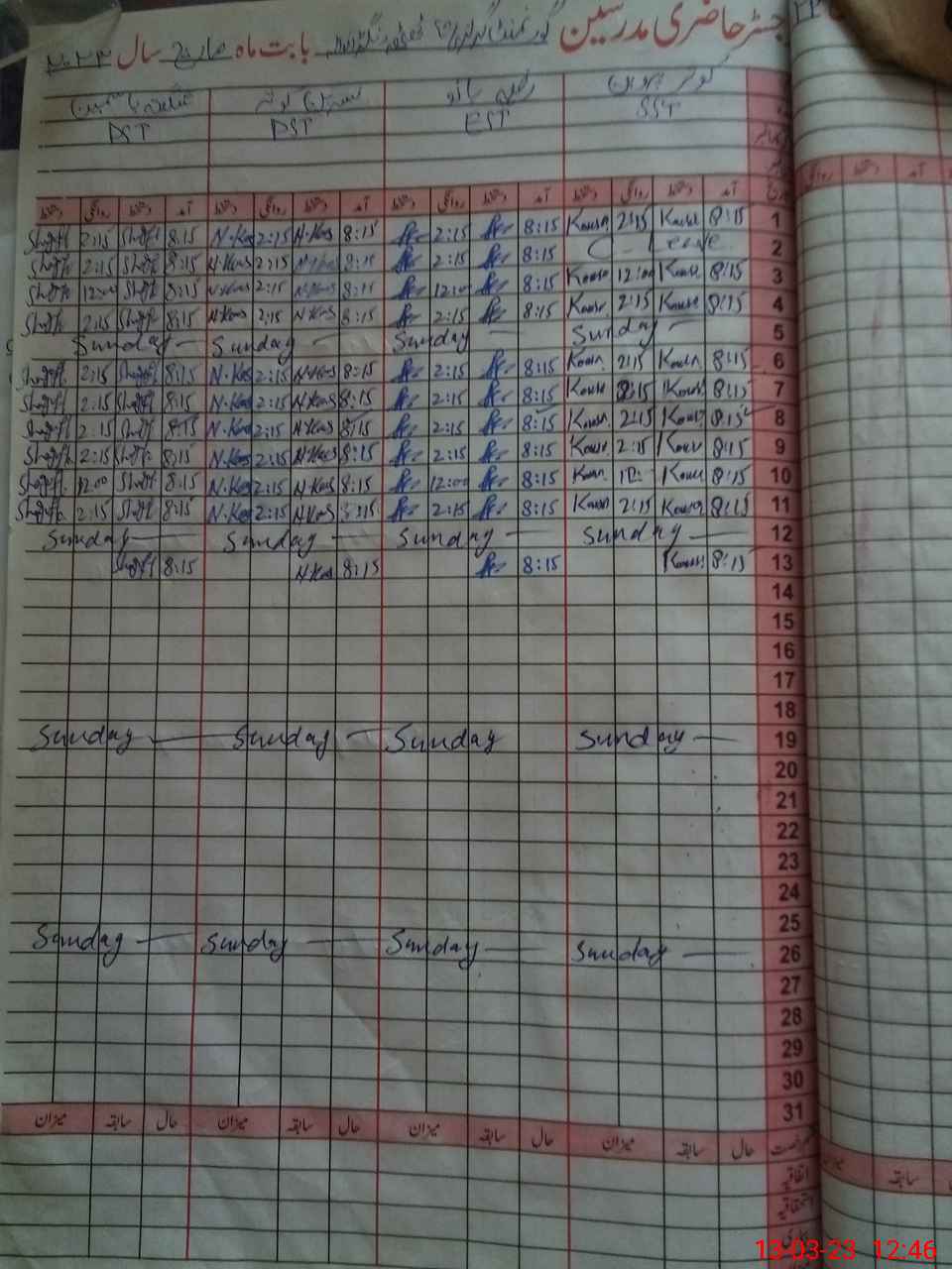 | CNIC | Full Name | Designation | R/C | Absence During Last Calender Month |