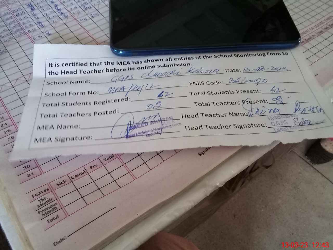 | EMIS Code: 36120190 | Name of School: GGPS LASURI KOHNA MUMTAZ NAGAR SHUJABAD DISTT. MULTA | |||