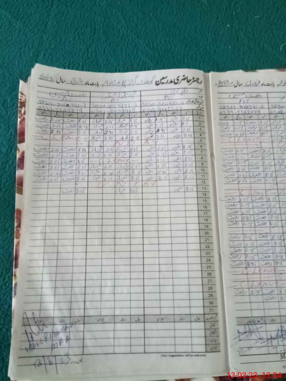 | CNIC | Full Name | Designation | R/C | Absence During Last Calender Month |