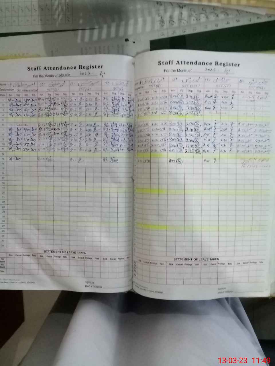 | CNIC | Full Name | Designation | R/C | Absence During Last Calender Month |