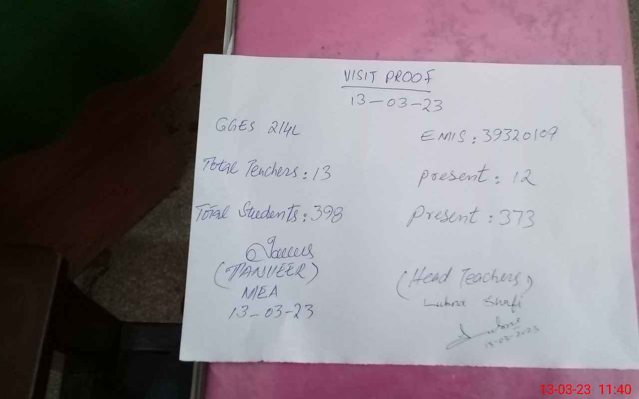| Name: Lu**** Sh**** Designation: (School Headmaster's/Headmistress's) SSE Phyf Phone/Cell Number: 03**** |