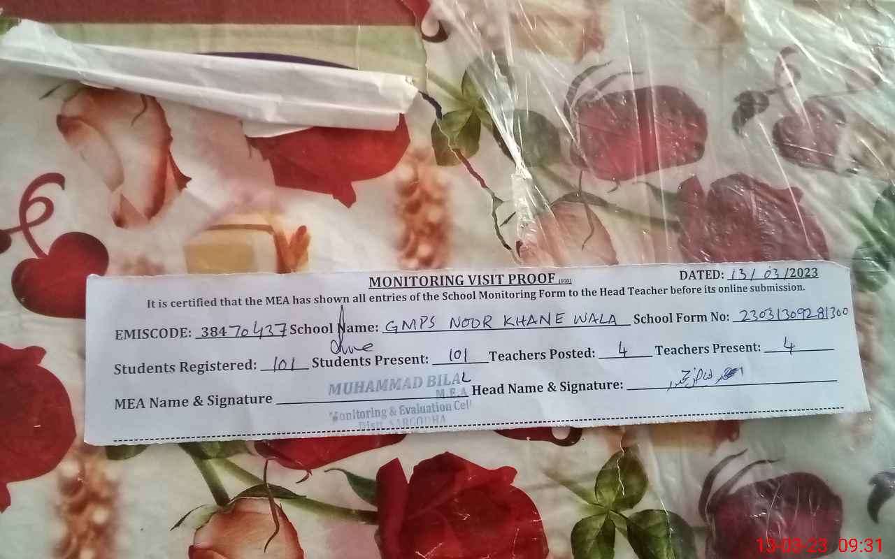 | EMIS Code: 38470437 | Name of School: GMPS NOOR KHAN-E-WALA | |||