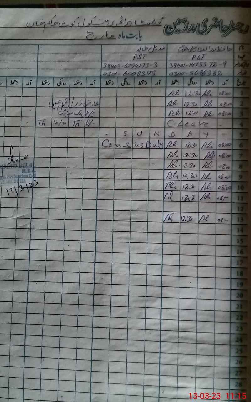 | Name: ZU**** AL**** Designation: (School Headmaster's/Headmistress's) PST Phone/Cell Number: 03**** |