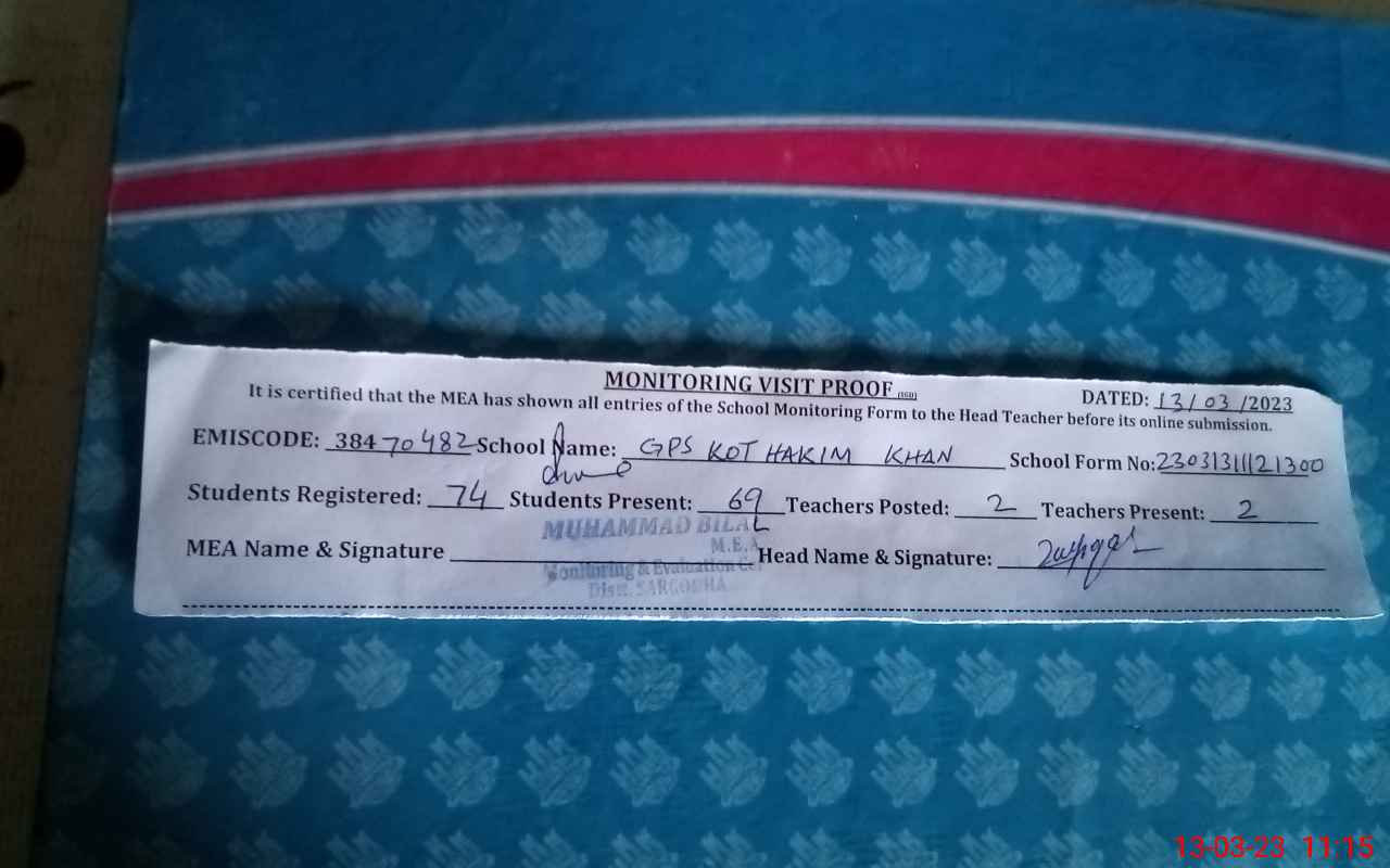 | EMIS Code: 38470482 | Name of School: GPS KOT HAKIM KHAN | |||