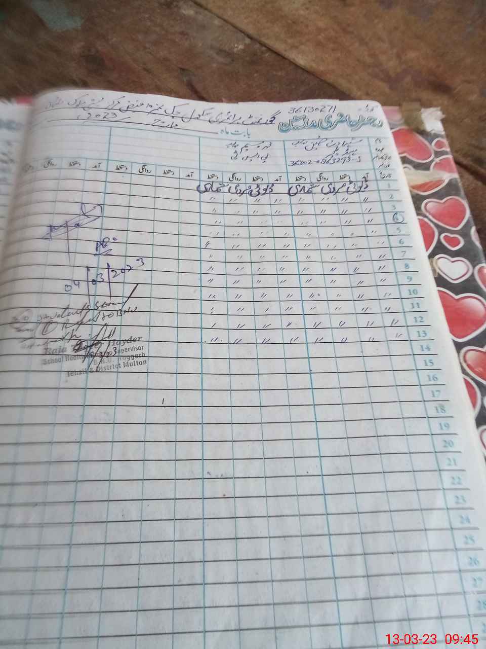 | School Visited by School Health & Nutrition Supervisor (No. of Visits) | 1 | Name1: | Raja Toqeer Haider | Name2: | |