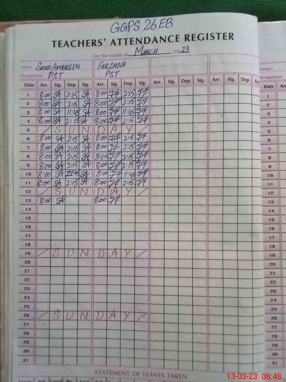 | Name: SA**** AM**** Designation: (School Headmaster's/Headmistress's) PST Phone/Cell Number: 03**** |