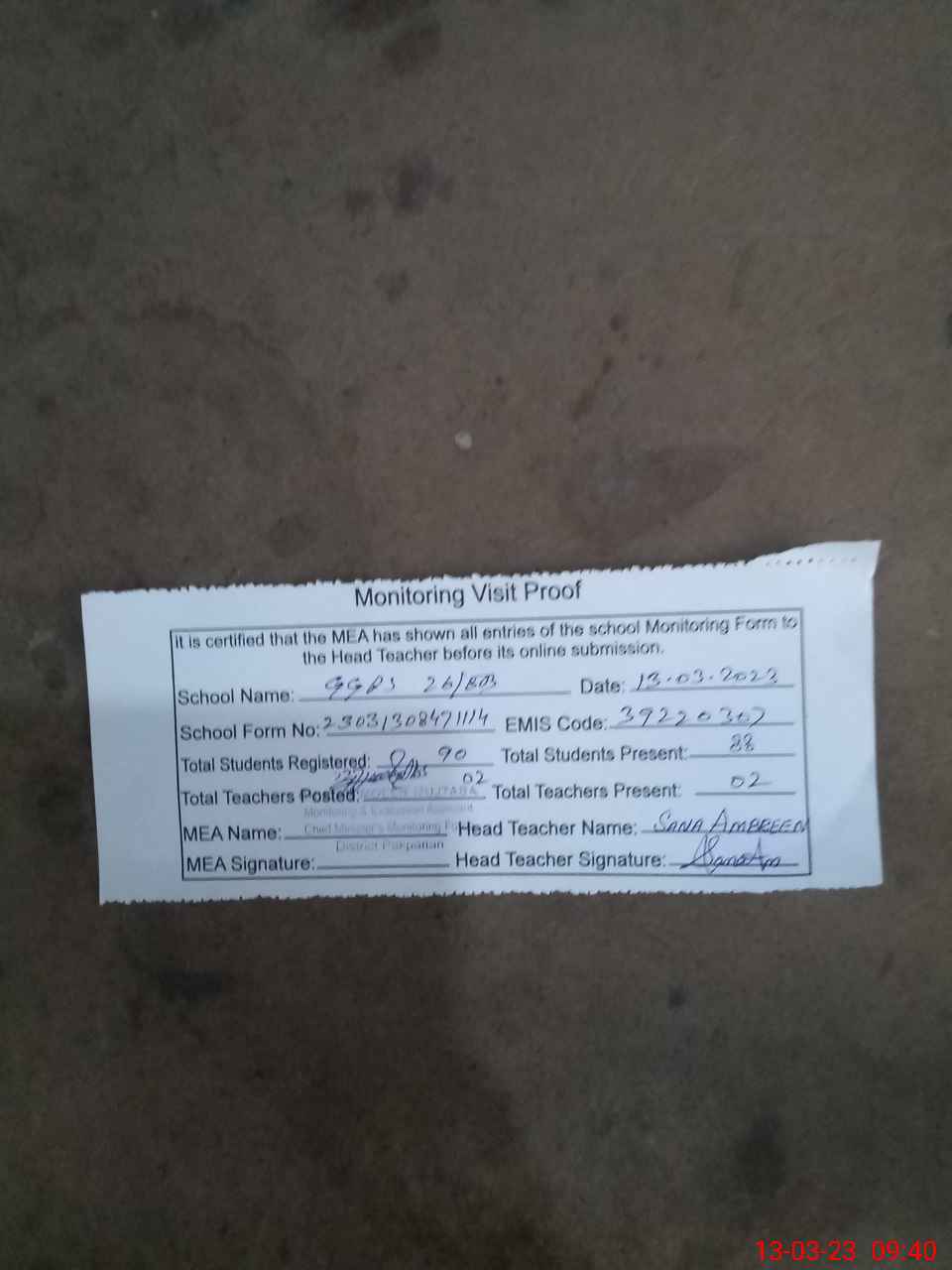 | EMIS Code: 39220307 | Name of School: GGPS 26 EB | |||