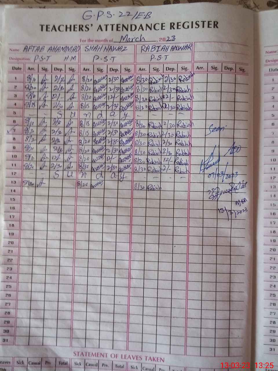 | Name: AF**** AH**** Designation: (School Headmaster's/Headmistress's) PST Phone/Cell Number: 03**** |