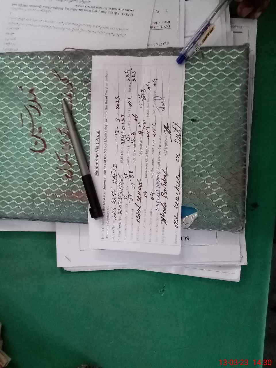 | Attendance Register | Head Teacher | MEA with School | Visit Proof |