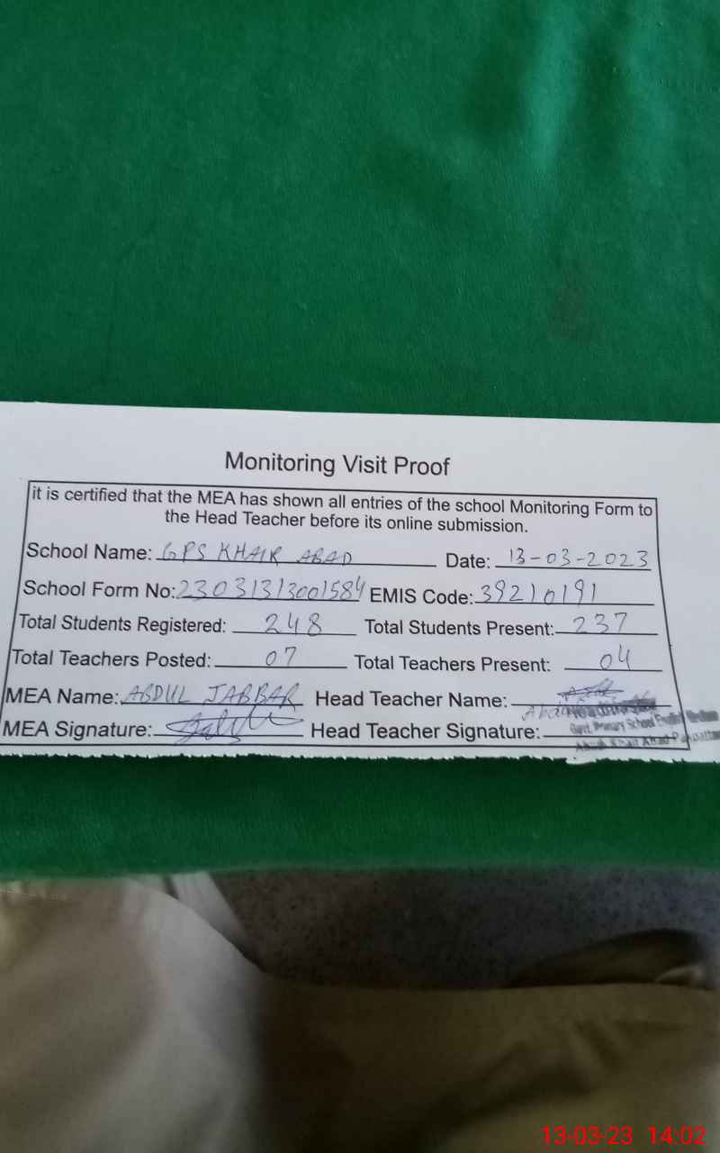 | EMIS Code: 39210191 | Name of School: GPS KHAIR ABAD PO PAKPATTAN | |||