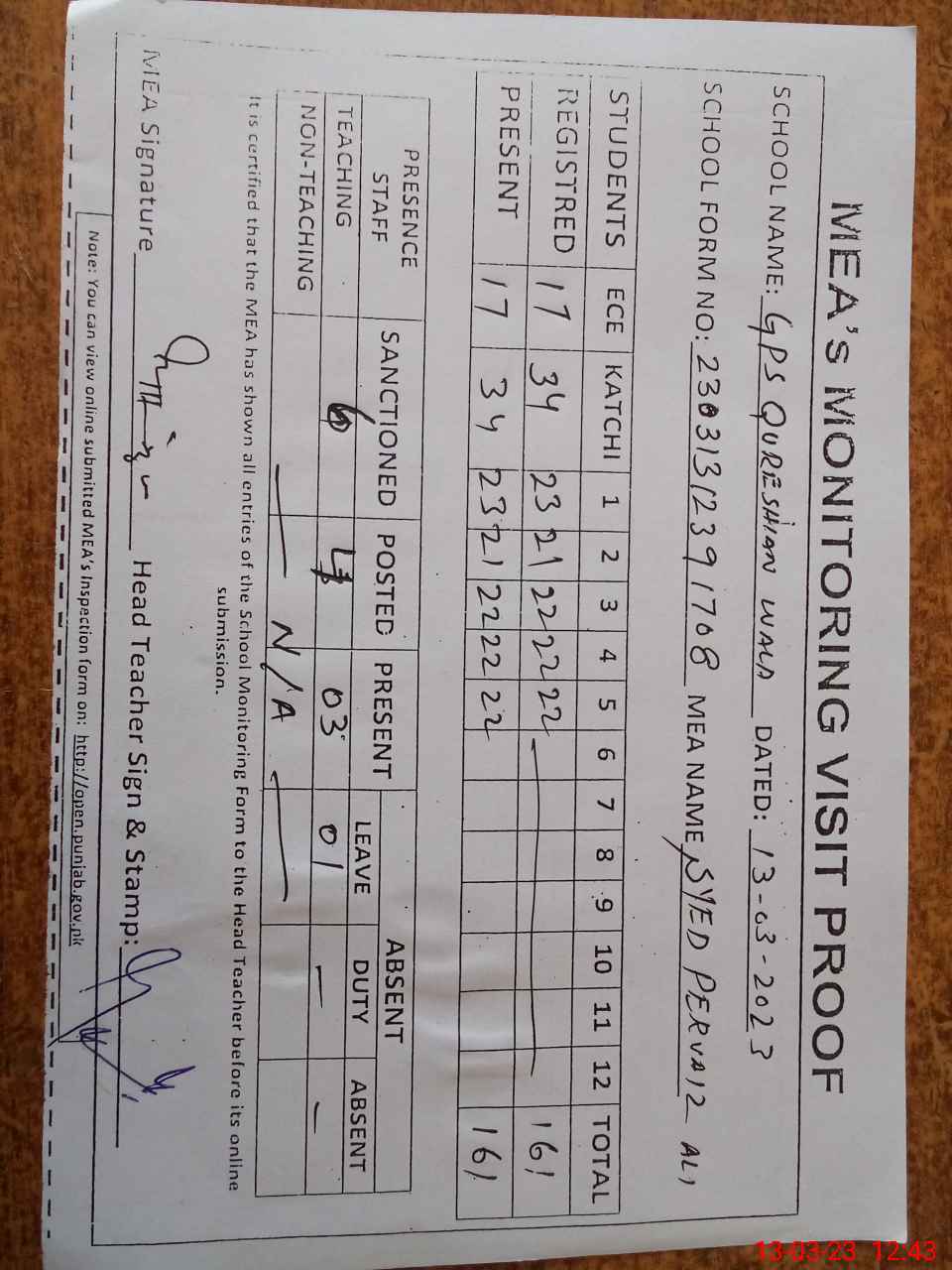 | EMIS Code: 36410547 | Name of School: GPS QURESHIAN WALA, P/O QATAL PUR, SARAI SIDHU | |||