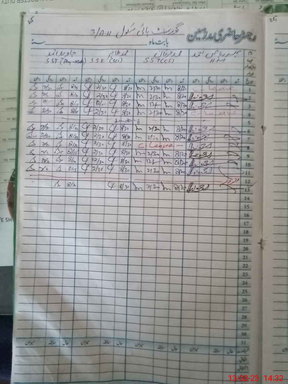 | CNIC | Full Name | Designation | R/C | Absence During Last Calender Month |