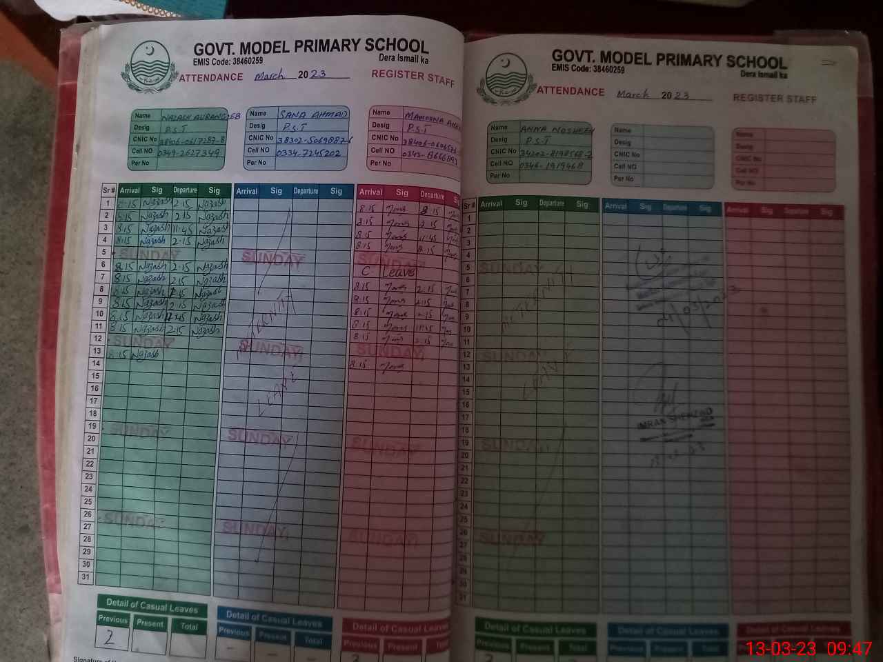 | CNIC | Full Name | Designation | R/C | Absence During Last Calender Month |