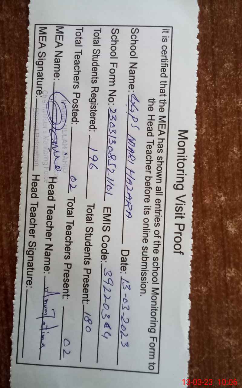 | EMIS Code: 39220364 | Name of School: GGPS MARI HAZARA | |||