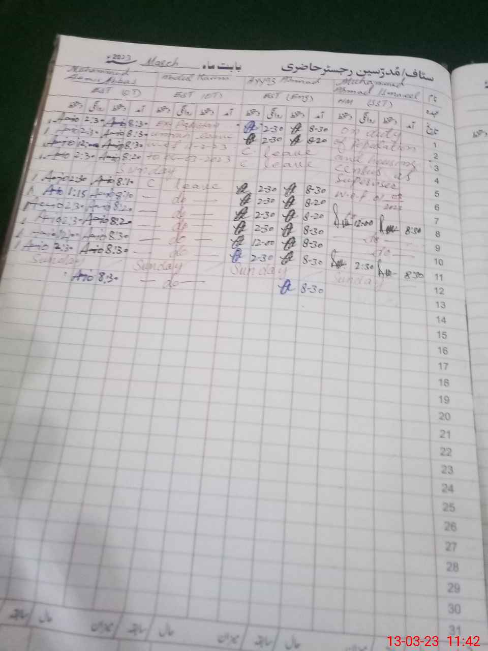 | CNIC | Full Name | Designation | R/C | Absence During Last Calender Month |