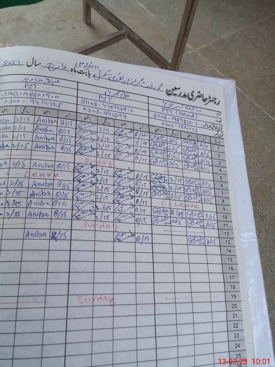 | Name: SA**** NA**** Designation: (School Headmaster's/Headmistress's) PST Phone/Cell Number: 03**** |