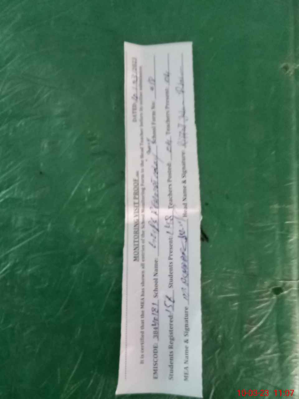 | Monitoring Date: 10-03-2023 | Start Time: 10-03-2023 10:25 AM | End Time: 10-03-2023 11:09 AM | Name of MEA: MU**** AS**** (R**** | |