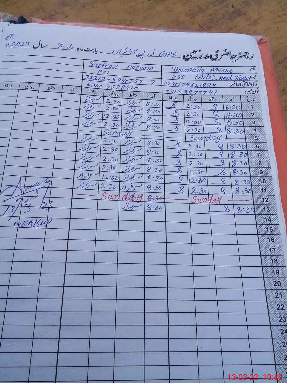 | Name: Sh**** Mu**** Designation: (School Headmaster's/Headmistress's) ESE Arts Phone/Cell Number: 03**** |