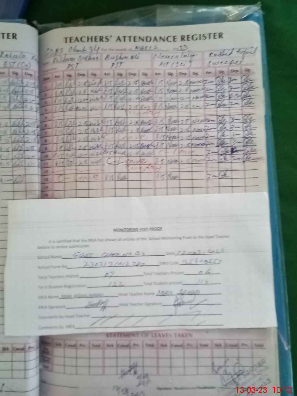 | Attendance Register | Head Teacher | MEA with School | Visit Proof |
