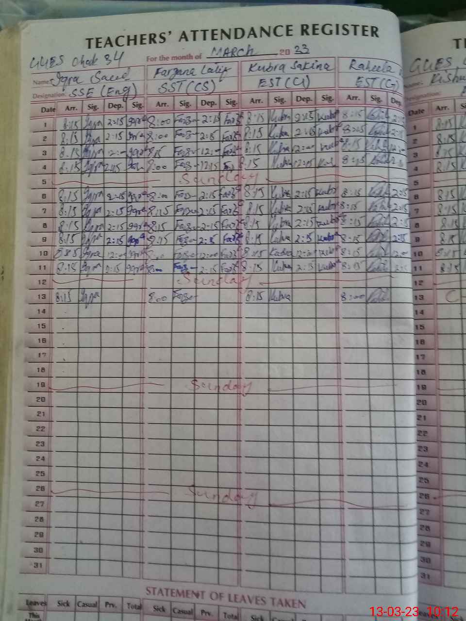 | 35**** | Ki**** Su**** | PST | Regular | 2 | 0 | 0 | 0 | 0 | 0 | 0 | 0 | 2 | Casual |
