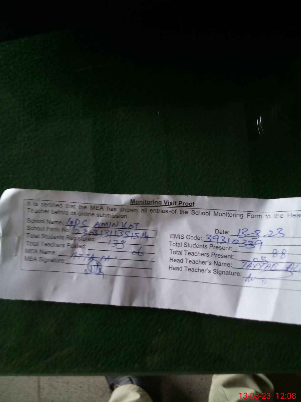 | EMIS Code: 39310339 | Name of School: GPS AMIN KOT | |||